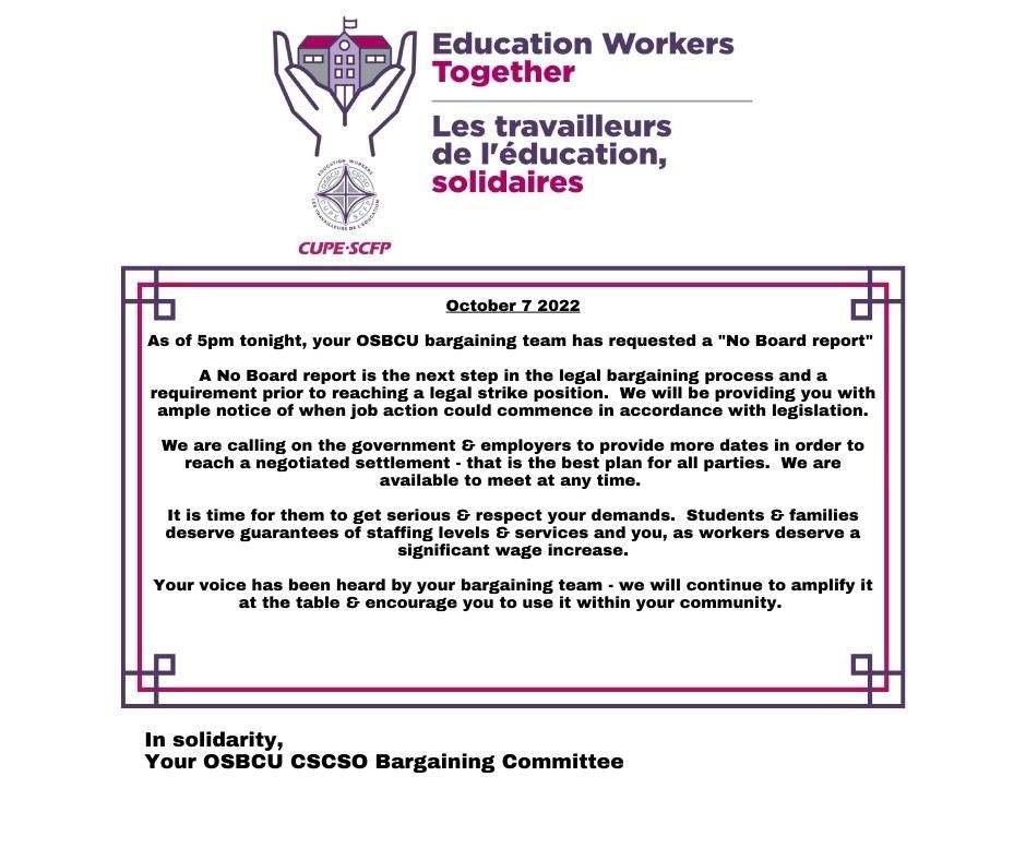 As of 5pm tonight, your OSBCU bargaining team has requested a “No Board report”
